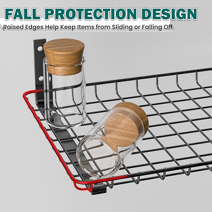 - Durable Steel Construction: Made from high-quality steel with a rust-resistant powder-coated finish, each wall shelf supports up to 60 lbs and ensures long-lasting stability and durability, even in humid environments