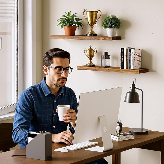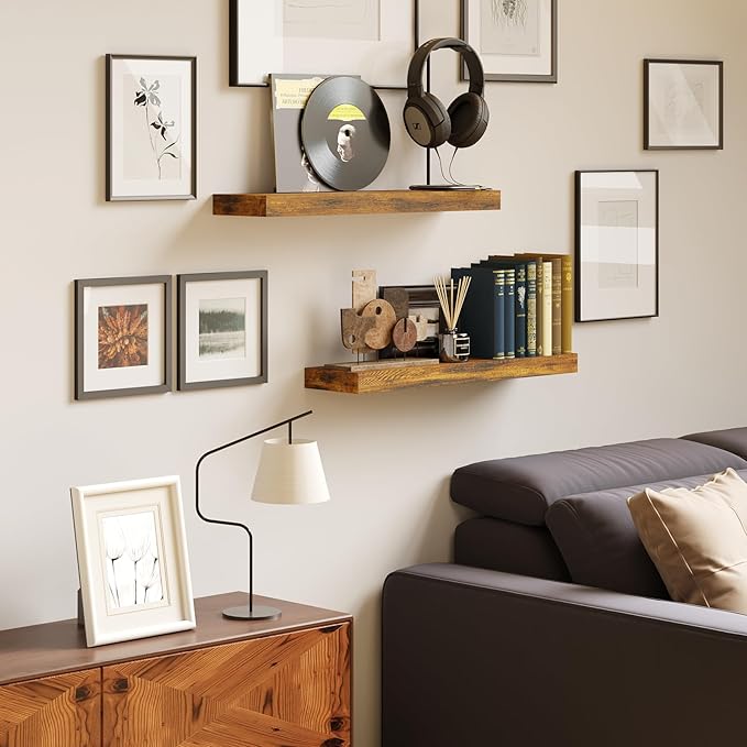 BAMEOS Floating Shelf,Wall Shelf,Decor Wall Mounted Shelves,Hanging Shelf Set L24xW6 for Bathroom Kitchen Living,Kitchen,Room Bedroom Storage, Rustic Brown