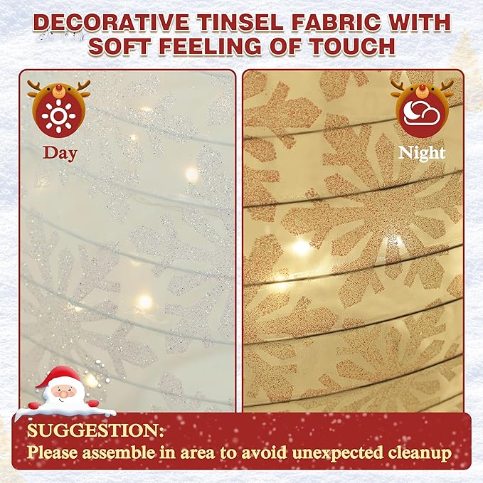 - Premium Quality: Our lighted Christmas decoration is made of a high quality powder-coated steel frame which ensures the long service life. It is durable enough for you to use year over year and it wouldnât break easily. Decorative tinsel fabric gives you soft feeling while touching it