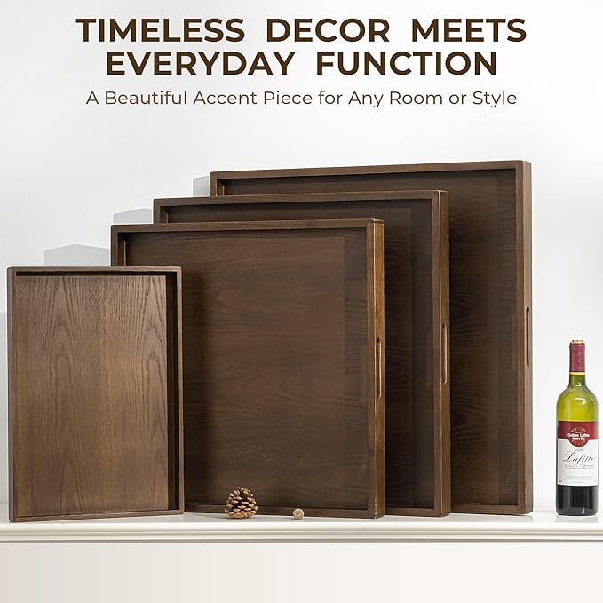 - Multiple Functional Features: The serving tray fits for brunches and parties to an elegant coffee table organizer for remotes, books, and candles. The large tray versatile design works well in living rooms, bedrooms, kitchens, and outdoor patios