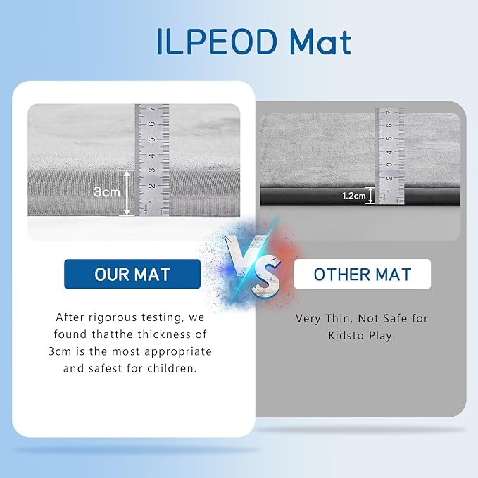 - 🌟HOW TO CARE FOR YOUR MAT:When you open the package,it may be wrinkled,very flat and inelastic.Don’t fret - this is normal! As long as it is left for 3-5 days, the mat will naturally regain its thickness and elasticity. we recommend steaming or ironing it to speed up recovery. After you have completed the steaming/ironing, your thick floor padded mat should rebound and be ready to use!
