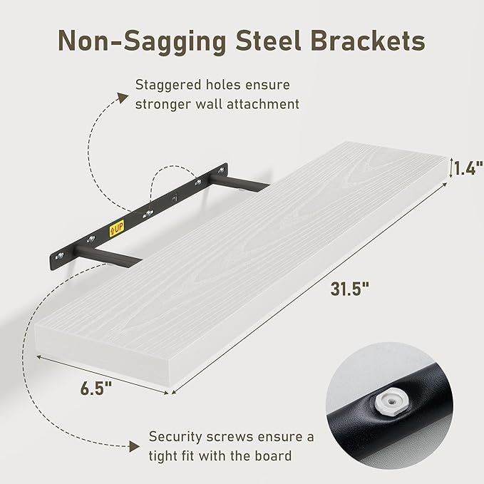 - Easy To Assemble: This floating shelves not only come with stainless-steel galvanized invisible brackets, but also equipped a fixing screw at the bottom to fix the shelf on the support rod, which solves the problem of sliding and is not easy to damage, and can be used for a long time. Instructions, magnetic level, drywall anchors, and screws included. This is great because you can easily mount these rustic shelves Gap-Free to any surface in less than 10 minutes