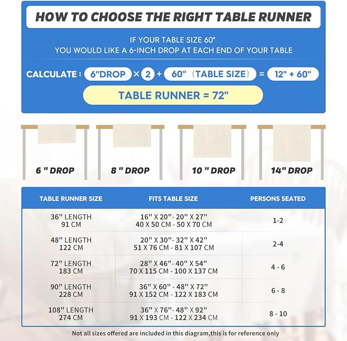 • Fits Table Size : This table runner is 13 x 72 inch, appropriate for a table that can seat 4-6 people, better match your table and give you a delightful dining experience