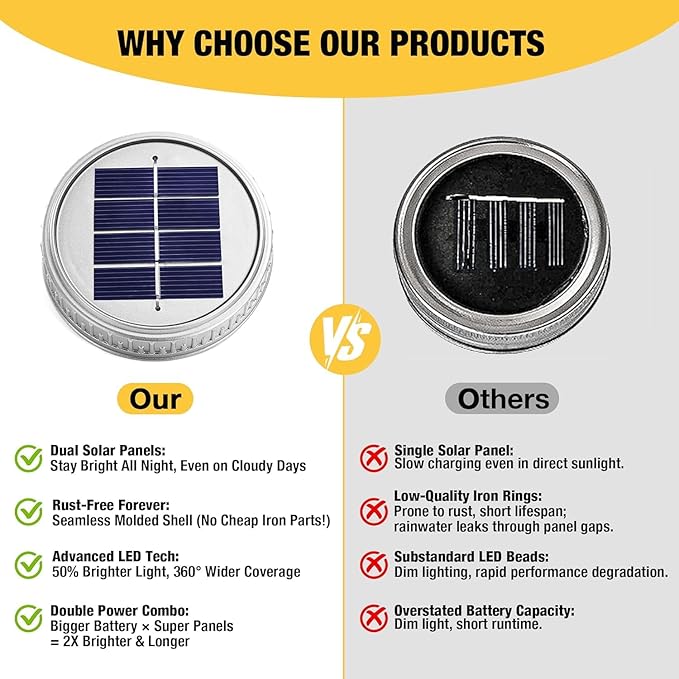 - 《 The Gift of Real Value》Add to cart and get: 1 The power to outshine fake 600mAh jars, 2 The tech to laugh at rust, 3 A set of 9 honest lights that turn sunlight into art, No more leaks, no more lies—just lasting beauty.