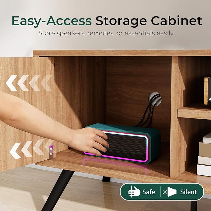 - Smart Storage, Clutter-Free Living: Features 2 enclosed cabinets and an open adjustable shelf to store media, books, or dÃĐcor. Built-in rear cord holes keep cables neat, making it a functional tv stand with storage