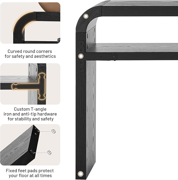 - 【Unique Contour Design】- The long black entryway table features a smooth waterfall edge design with big rounded corners, adding a sleek touch. Its minimalist lines and artistic flair enhance your space with unique character