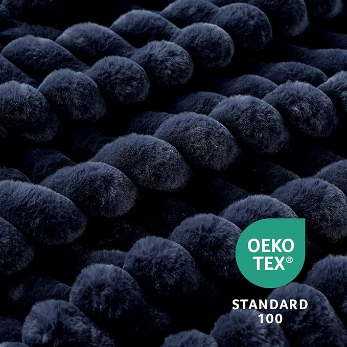 Amélie Home Faux Fur Throw Blanket for Couch, Cozy Fuzzy Fluffy Fur Luxurious Soft Striped Plush Gift Blankets for Family Sofa Chair Bed Living Room Bedroom, 55"x70", Navy Blue