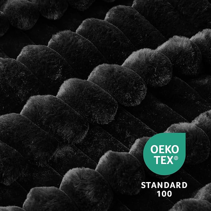 Amélie Home Faux Fur Throw Blanket for Couch, Cozy Fuzzy Fluffy Fur Luxurious Soft Striped Plush Gift Blankets for Family Sofa Chair Bed Living Room Bedroom, 55"x70", Black