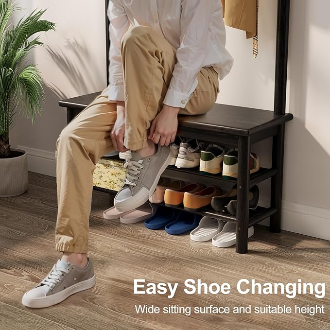 • [3-in-1 Coat Rack] Our hall tree combines three functions in one: hooks for coats and bags, a shoe bench for changing shoes, and a shoe rack to organize your footwear—this freestanding coat rack brings you a tidy, convenient, and cozy entryway at home