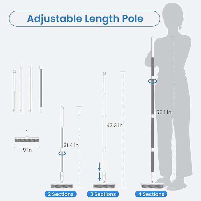• 【Extra-Long 56” Handle for Comfort】 Clean without bending or kneeling — the 56-inch long handle saves your back and knees, making it ideal for extended cleaning sessions indoors or outdoors.
