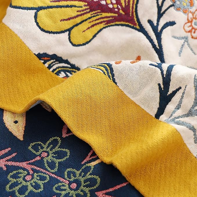 Boho Muslin Blanket for Adults 6-Layer Gauze 80 x 90 Inches Soft Cozy 100% Cotton Summer Cooling Blanket Floral Farmhouse Home Decor Sofa Bed Coverlet Both Sides (Boho Floral, 80 x 90 in)