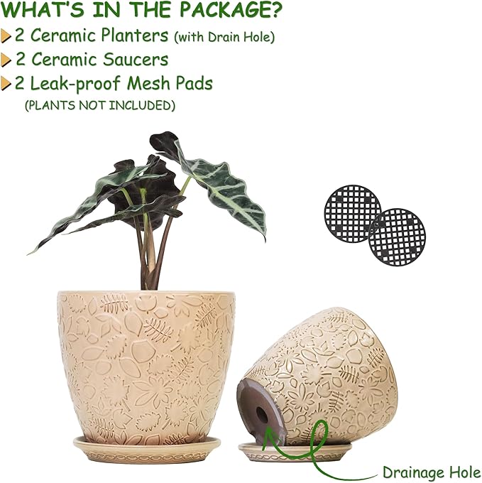 - Thoughtful Gift for Plant Enthusiasts:The Ceramic Plant pots with Drainage Hole and Saucer for plants indoor Designed with charming leaf , flower, and plant motifs, these planters make excellent gifts for plant lovers. Suitable for occasions such as birthdays, anniversaries, housewarmings, Thanksgiving, Christmas, and more.