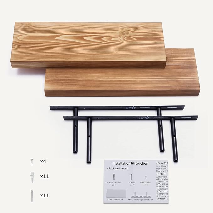 - Easy To Assemble - This floating shelves come with stainless-steel galvanized invisible brackets, toggle bolts for drywall & a simple instruction manual to help you install. The assembly of this wall shelf is very simple, only two boards and some necessary screws and other hardware, and we also have detailed instructions for you to view, you can assemble quickly. Please contact our product support team when you have any questions.