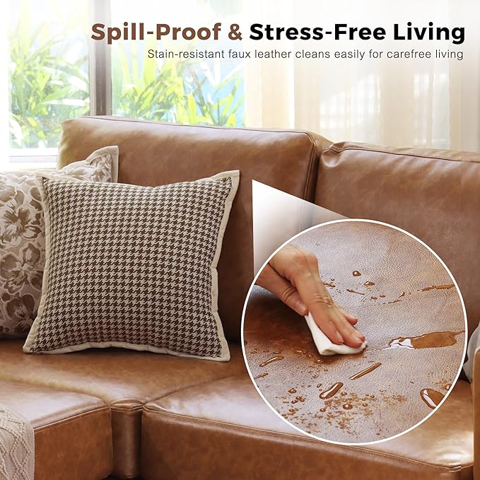 - 💡Effortless-Clean Faux Leather Sofa: Waterproof and stain-resistant faux leather stays spotless. Wipe spills clean in 10 seconds with a damp cloth. The scratch-resistant textured surface feels soft and smooth, maintaining a stylish look even with pets and kids.