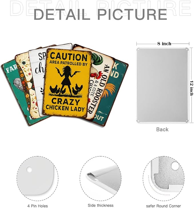 • Funny Farmhouse Design: Featuring vintage designs and humorous chicken sayings, these metal tin signs add charm and personality to your chicken coop accessories and outdoor decor
