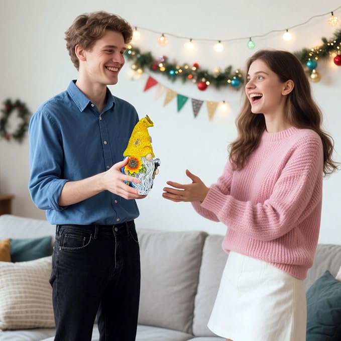• Adorable solar gnomes statues featuring charming butterfly, bee, and sunflower designs, perfect for adding whimsy to your garden decor. These solar garden gnomes light up at night, creating a magical glow in your outdoor space.