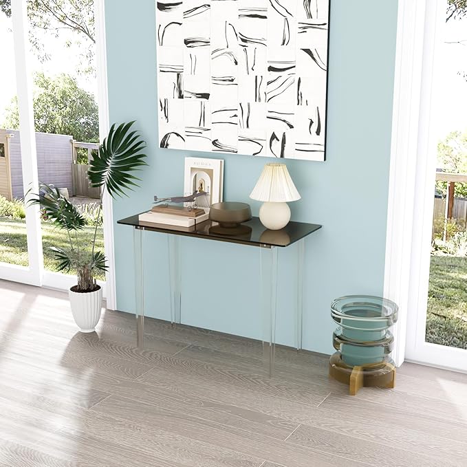 Acrylic Desk, Modern Study Table for Home Office - Extended Surface Multi-Purpose Console & Entryway Table, Sturdy Lightweight Design (42.5-inch, Yellowtea)