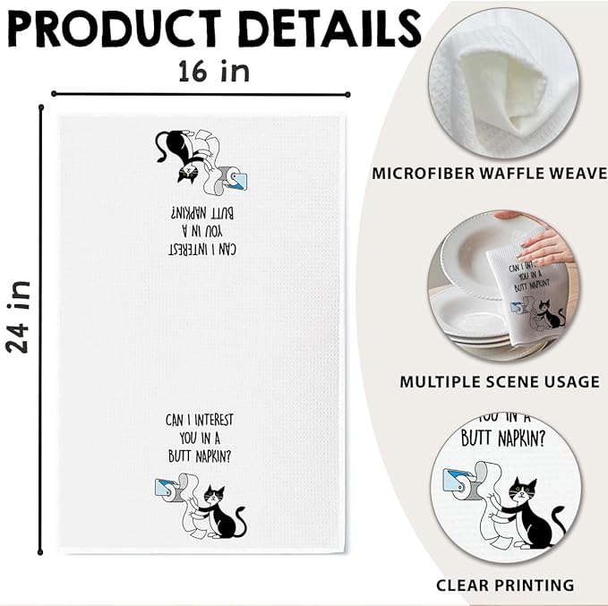 • Multiple Uses: Functional as a tea towel, dish cloth, or bathroom hand towel—blends humor and practicality in every room.