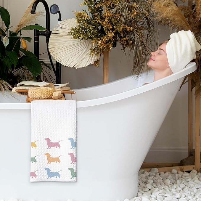 Dachshund Kitchen Towel, Waffle Weave Microfiber Wiener Dog Hand Towel, for Women, Dachshund Decor Accent for Bathroom or Kitchen