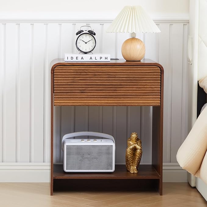 - 【Minimalist & Practical】 Our bed side table boasts a minimalist curve profile and a drawer with a unique waveform panel, perfectly balancing modern aesthetics with functional design. The chic appearance complements various bedroom styles, from contemporary to mid-century modern. The smooth lines and rounded corners make it safe for kids and families, creating a standout piece that elevates the ambiance of your room.