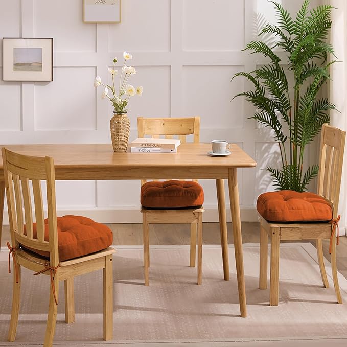 Chair Cushions for Dining Chairs, Dining Chair Cushions, Tufted Indoor Chair Pads with Ties & Non Slip Backing, Seat Cushions for Kitchen Chairs 16.5” x 16.5” x 3.5”, Set of 6, Orange