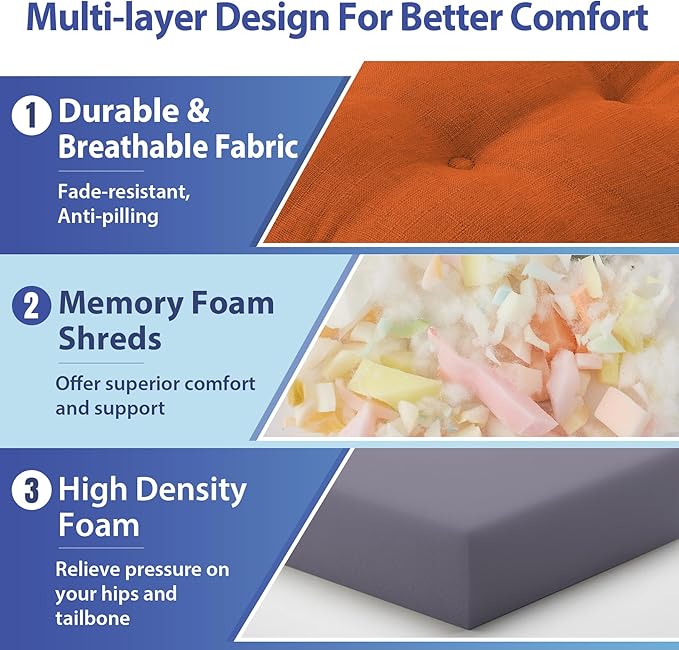 • 【Premium Memory Foam Support】: Designed with high-density memory foam for long-lasting support and comfort, our dining chair cushion offers superior comfort and support, relieving pressure on your hips and tailbone during extended seating