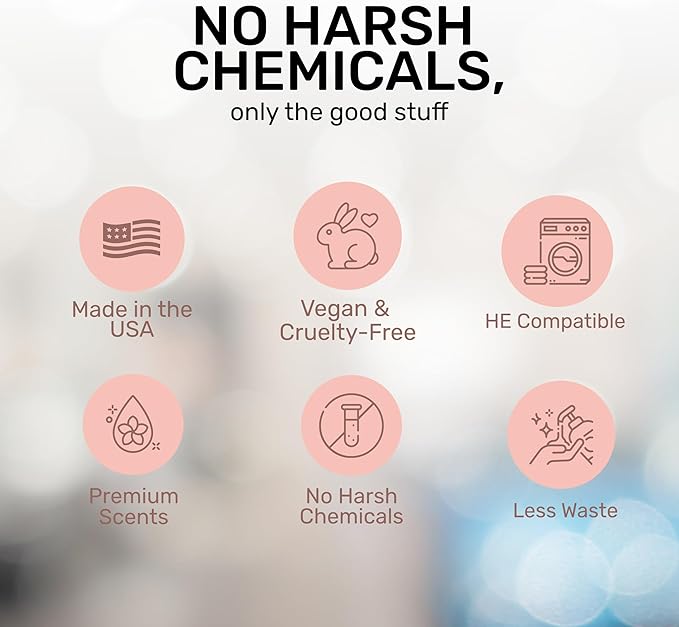 • YOUR CLOTHES WILL LOVE IT - We designed this concentrated blend of gentle washing detergents and natural fragrances to soften and reduce wrinkles and eliminate odors, stains, and dirt. Our high efficiency laundry detergent is ideal for everyday laundry, including cottons, linens, blends, and durable synthetics. It's also safe for whites and all colors, and you can use it in hot, cold, hard, or soft water.