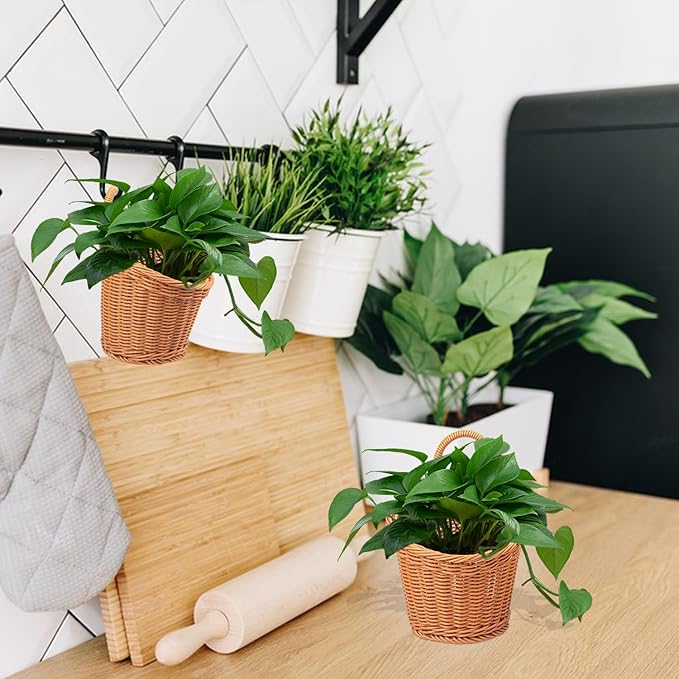 • 【Durable Construction: 】Made from high-quality plastic, these Plastic Woven Wall Hanging Basket mimic the look of wicker but offer superior durability and resistance to moisture and deformation.