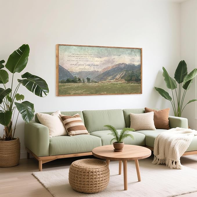 Aurlan Numbers 6:24-26 May The Lord Bless You Wall Art(40"x20"), Large Jesus Christian Bible Verse Scripture Canvas Artwork, Abstcat Watercolor Mountain Landscape Nature Decor for Home Dining Room Christ Gift
