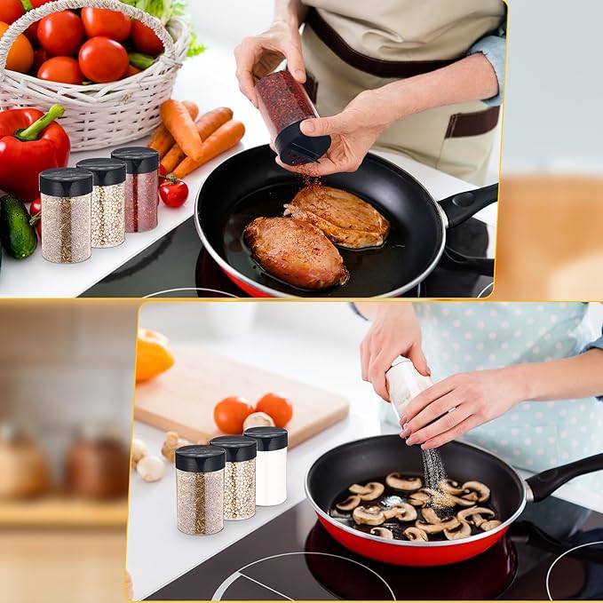• Multi-Purpose: these plastic spice jars with shaker lids are perfect for storing dried spices, salt, peppers, seasonings, herb blends, powder, glitter, bath salts, crafts, etc.widely applied in kitchens, canteens, hotels, restaurants, cake shops and other places