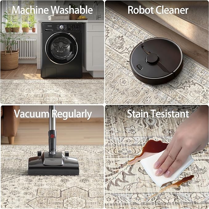 - 【Effortless Machine Washable Area Rug】Keep your 5x7 brown and beige washable rug fresh with zero hassle! perfect as a soft low pile large washable rug for living room, dining room under table rug, or bedroom floor mat, it withstands daily messes. simply vacuum regularly or toss in washing machine—air-dries rapidly while resisting fading. durable for everyday use-machine washable rug 5x7 bedroom.