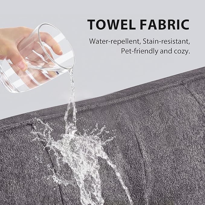 - Premium Materials: We've meticulously chosen top-notch towel fabric, coupled with a robust wooden frame, powerful sinuous springs, and high-density foam. This combination ensures that our sofa bed keeps its shape even after extensive use. Plus, the two soft lumbar pillows offer outstanding support, easing back pressure and delivering a plush, comfortable seating experience