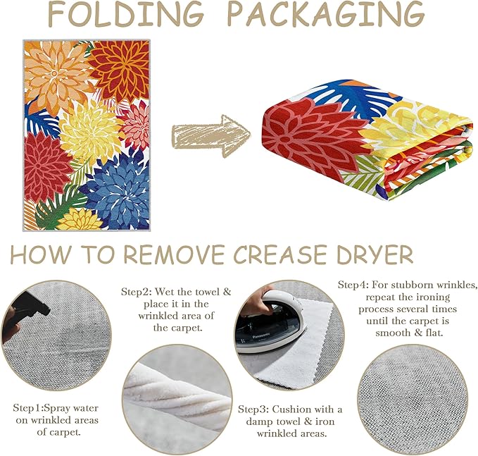 • Easy to Clean: Our indoor area floral rug is designed for hassle-free maintenance—simply shake off debris, hose it down, or spot clean for effortless upkeep, keeping it looking fresh all season long.
