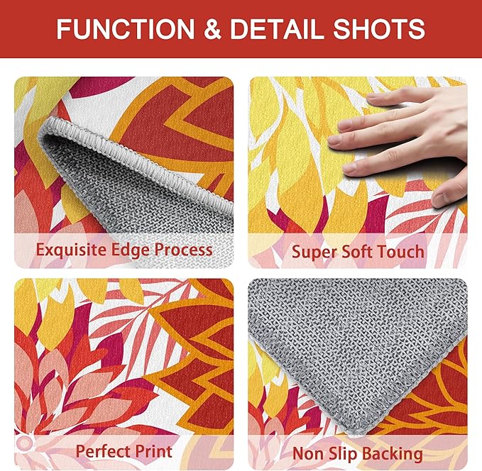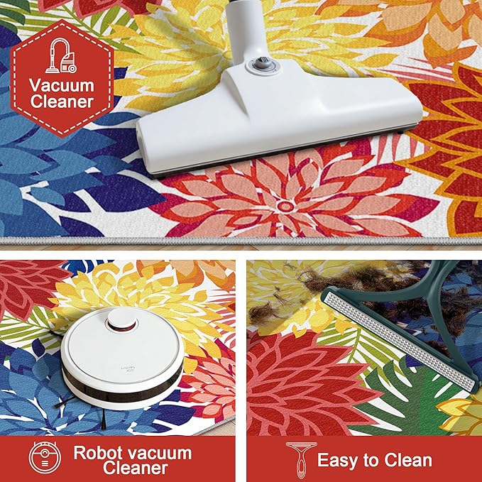 • Floral Pattern Design: Brighten up your indoor space with our stunning floral pattern washable rug, perfect for porch, living room, or bedroom, adding a touch of elegance and charm to anywhere.