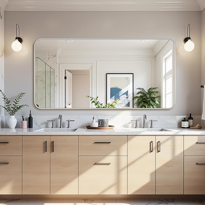 • High-Definition Clarity: The Furnbar wall-mounted bathroom mirror features upgraded HD glass that delivers clearer, distortion-free reflections, making it an ideal choice for your bathroom, vanity, or living room decor
