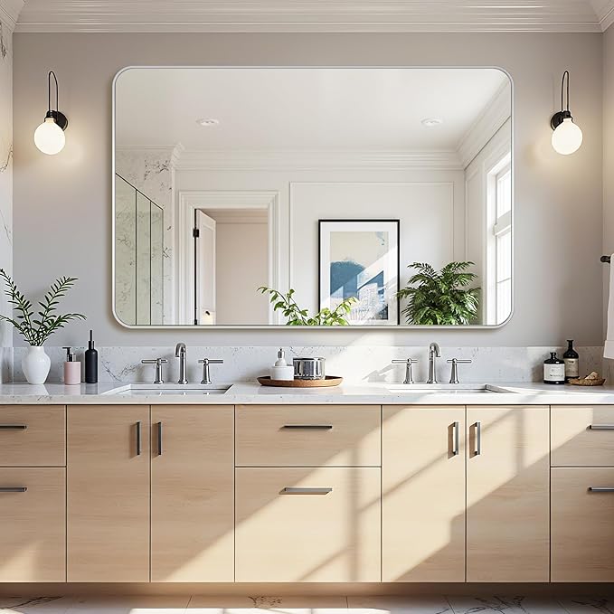 • High-Definition Clarity: The Furnbar wall-mounted bathroom mirror features upgraded HD glass that delivers clearer, distortion-free reflections, making it an ideal choice for your bathroom, vanity, or living room decor