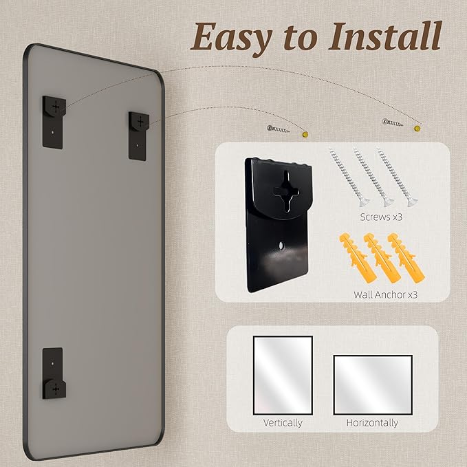 • Easy Installation: This wall-mounted mirror comes with instructions and all necessary installation accessories, making it quick and easy to hang horizontally or vertically in any desired location