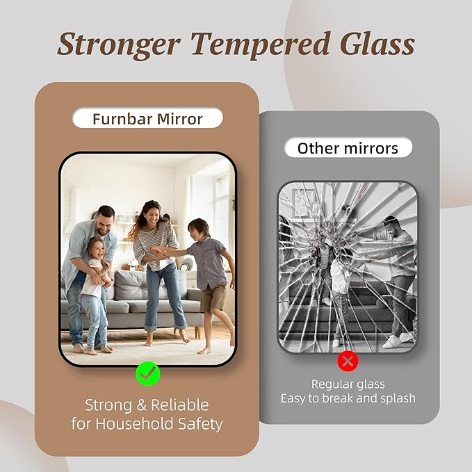 • High-Definition Clarity: The Furnbar wall-mounted bathroom mirror features upgraded HD glass that delivers clearer, distortion-free reflections, making it an ideal choice for your bathroom, vanity, or living room decor