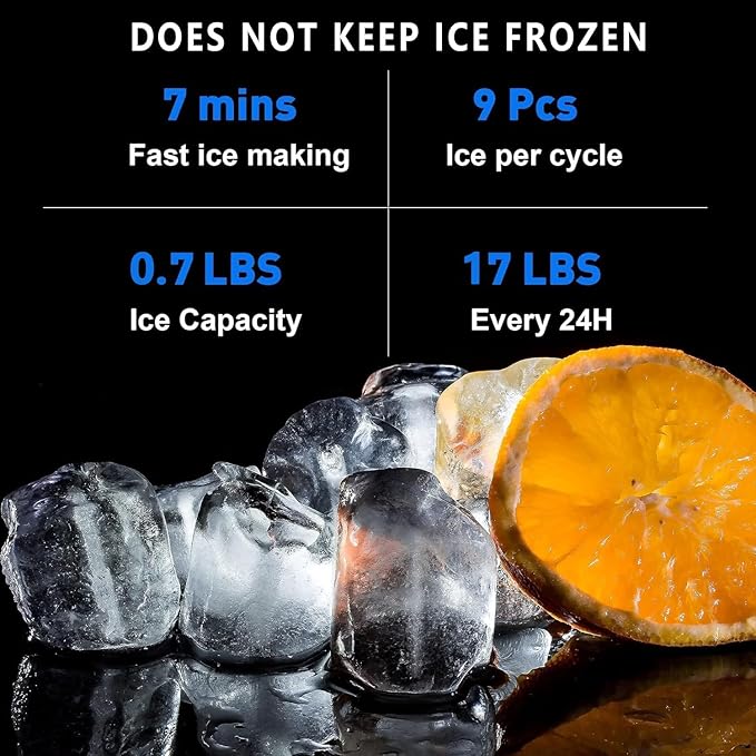 • BUILT-IN ICE MAKER: This machine makes its own bullet-shaped ice, and keeps it stored in an internal storage container ready to be dispensed instantly. It can store up to 0.65lb of ice but makes up 17.5 lbs of ice daily.(DOESN'T KEEP ICE FORZEN)