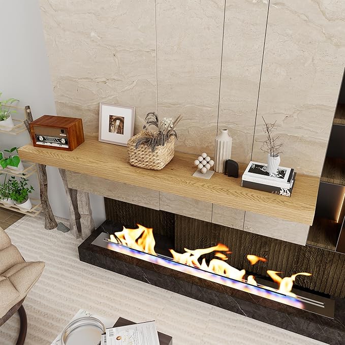Fun Memories 55 Inch Floating Shelves, 12 Inch Deep Floating Shelf for Wall, 55 x 12 Large Floating Shelves for Fireplace Mantel, 2 Inch Thick Wall Shelf for Living Room, Bedroom, Oak Color, 1 Pack