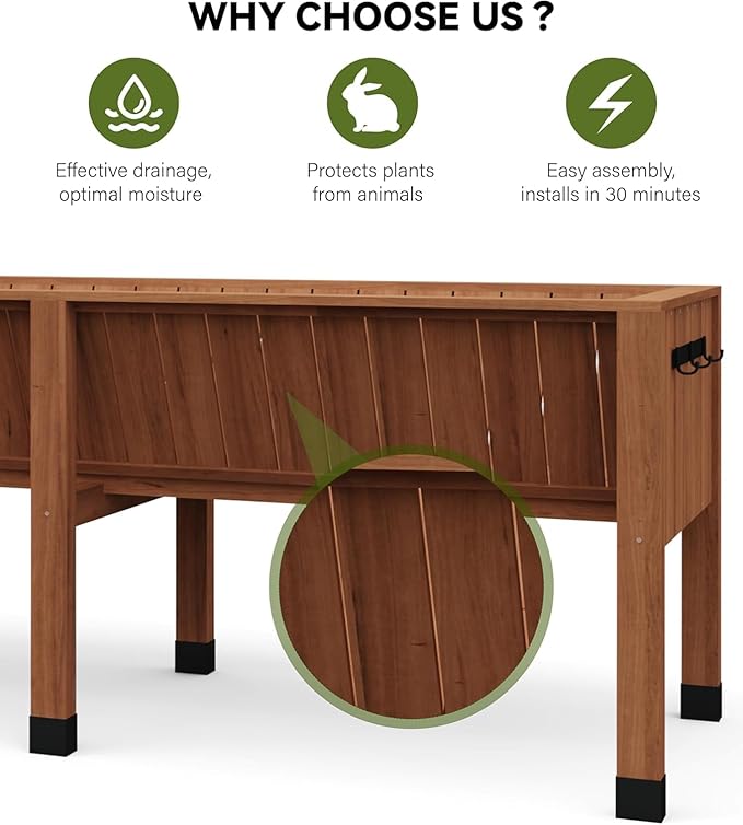 • Resilient Material: Crafted from high-quality natural natural fire wood, this garden bed features reinforced thick panels for superior durability and long-lasting performance, ensuring years of reliable use in outdoor spaces.