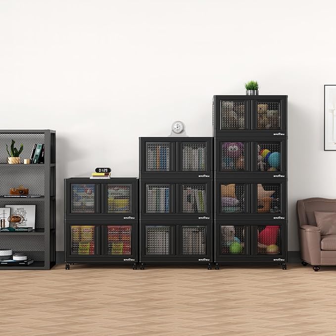 - 【Space-Saving Stackable & Collapsible】Maximize your storage footprint. Stack bins vertically as modular cabinets (bedside, clothing, books, kitchen) and collapse them nearly flat when not in use. Perfect for closets, laundry rooms, garages, playrooms, classrooms, dorms, and car trunks – featuring a roomy, odorless design.