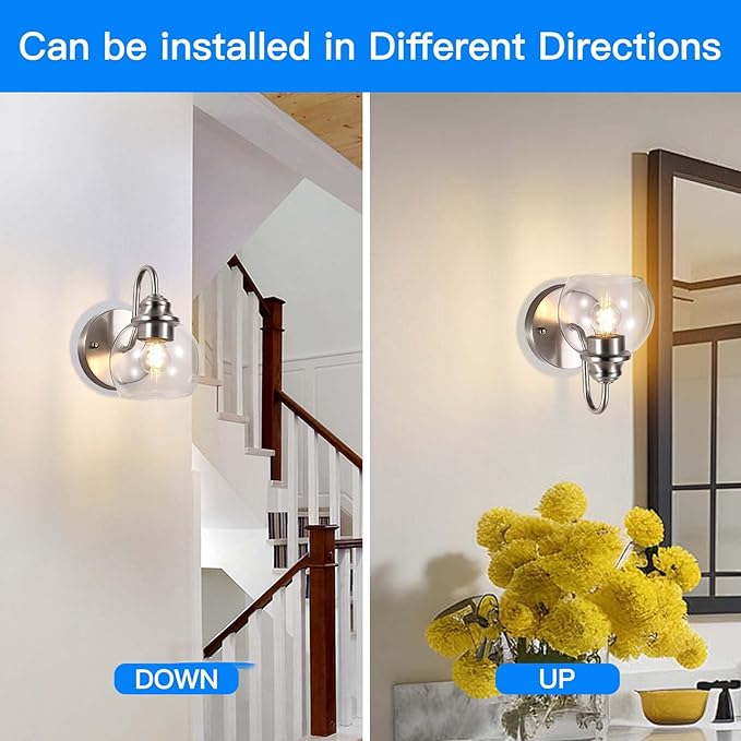 - ãLights Set Upward or Downwardã: These wall mounted light fixtures make it easy to install decorative up/down wall lights in many different areas you want, the modern wall light fixture can be installed downward as a bathroom vanity light or bedroom wall light, or installed upward as a fireplace light or dining room wall light, so this wall light can go into any style and will not look so obtrusive, instead it will add decoration to your space.