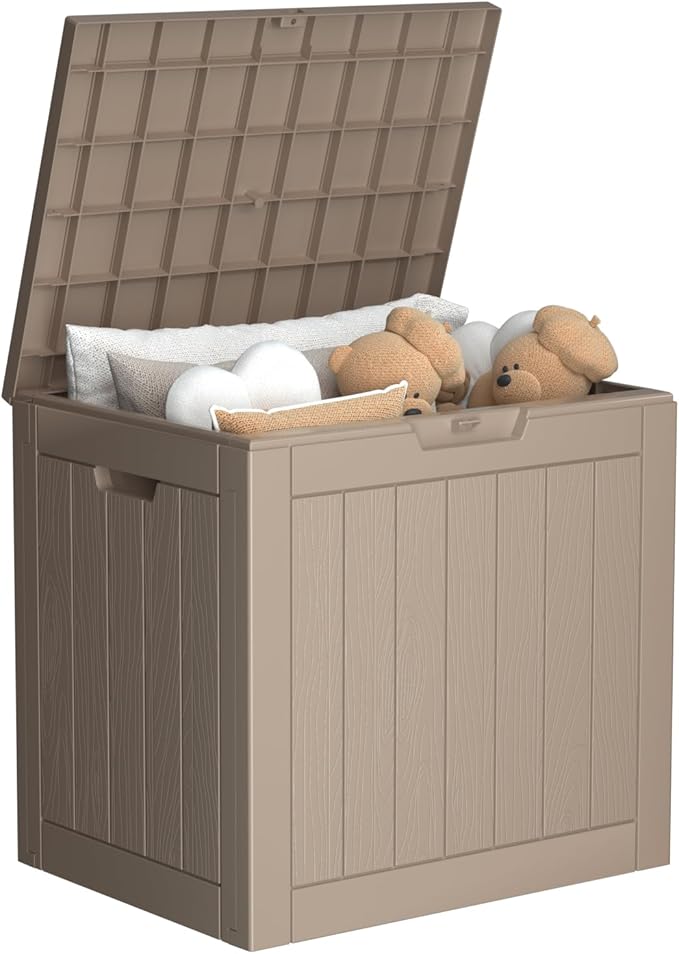 • ADAPTABLE TO VARIOUS SCENES: Whether used as an indoor laundry storage chest or an outdoor deck box container for items like outdoor cushions, garden tools, pool accessories, and sports equipment, this patio storage box provides abundant space. It's also versatile as a side table, yard seat, storage bench, or footrest
