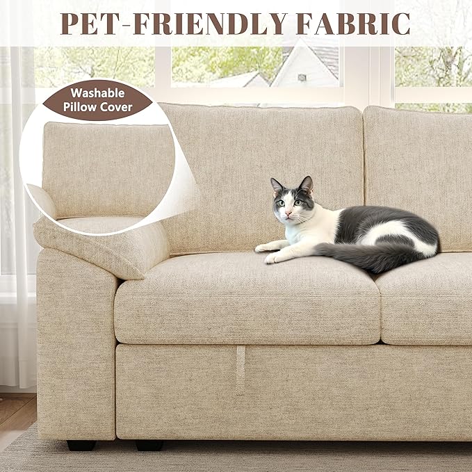 85 Inch Sectional Sleeper Sofa with Pull Out Bed,L Shaped 5 Seat Modular Sectional Sofa with Storage,Sectional Couches for Living Room,Cloud Modular Couch,Removable Sofa Cover,Beige
