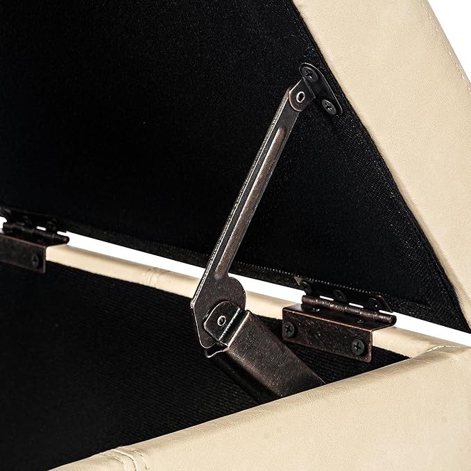 • SAFETY DESIGN: Constructed with a sturdy corner-blocked frame . Padded hinged lid stays open for safe access to storage space inside—great for your blanket and throw pillows.