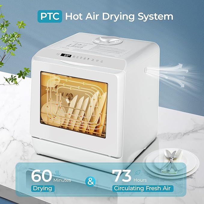 - ðð§ðĄðð§ððð ððŦðēðĒð§ð ð ðŪð§ðððĒðĻð§: Equipped with a advanced drying mode, Euhomy compact dishwasher delivers 60 minutes of hot air drying followed by 73 hours of automatic ventilation. Get clean, dry, odor-free dishes every time. The drying mode fits any wash cycle (except Fruit mode) and can even run solo for quick refresh. *ððĨðððŽð ððĻðð: Please use the detergent specifically designed for washing dishes