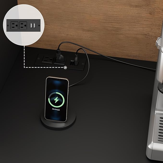 - Built-in Outlet For Kitchen Hutch: Built-in electric outlets in the pantry cabinet with storage enhance the functionality of the it which is handy for powering small appliances such as coffee makers and microwaves. Therefore, this kitchen cabinet which combines practicality and elegance, is sure to be a great choice for family gathering.