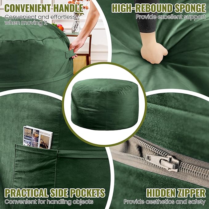 - CONVENIENT & PRACTICAL DESIGN: The bean bag features a side pocket for easy storage of small items like phones and books, as well as a handle for easy moving. Enjoy comfortable relaxation wherever you like.