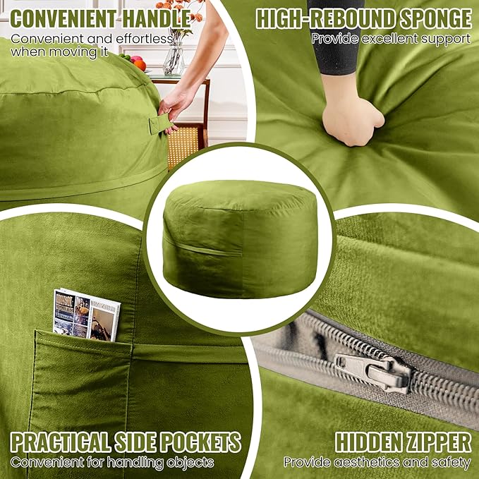 - CONVENIENT & PRACTICAL DESIGN: The bean bag features a side pocket for easy storage of small items like phones and books, as well as a handle for easy moving. Enjoy comfortable relaxation wherever you like.